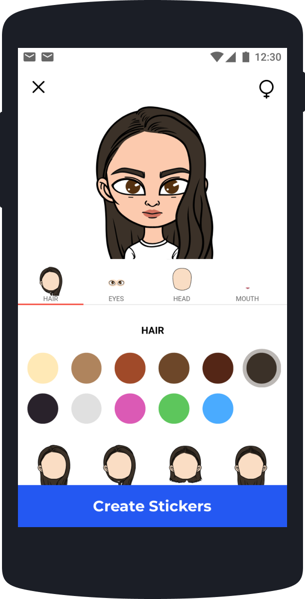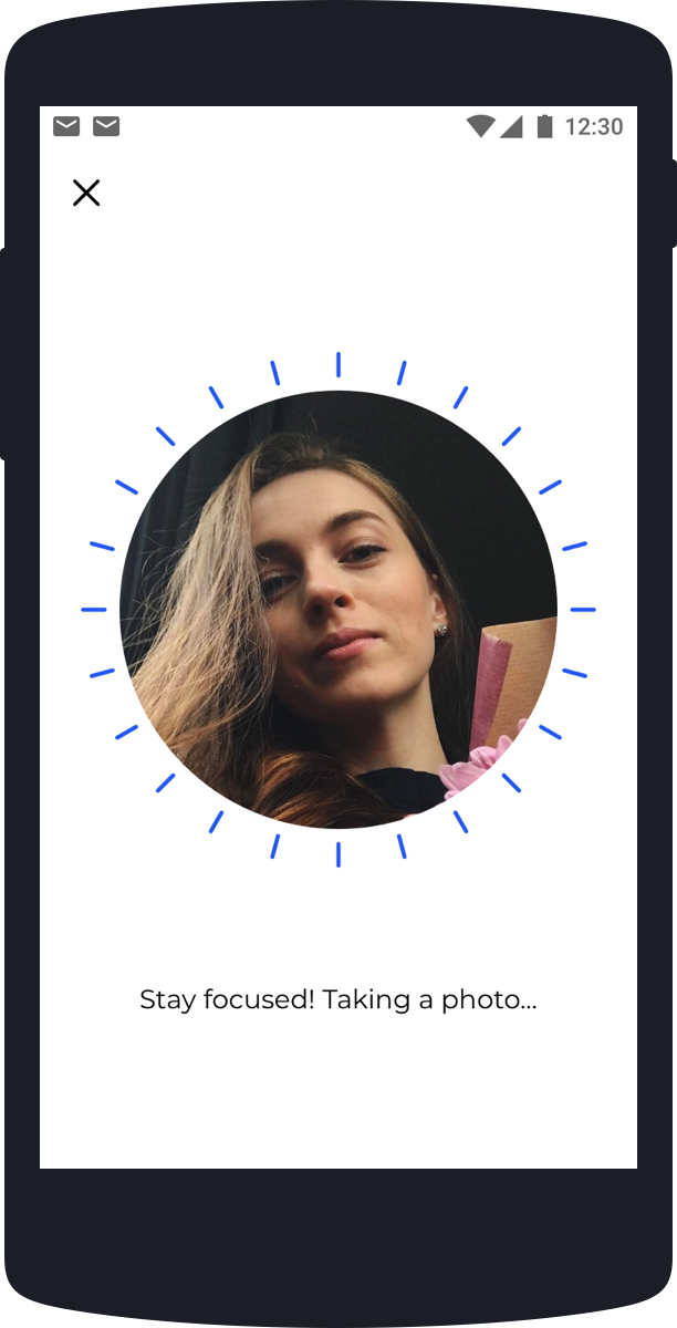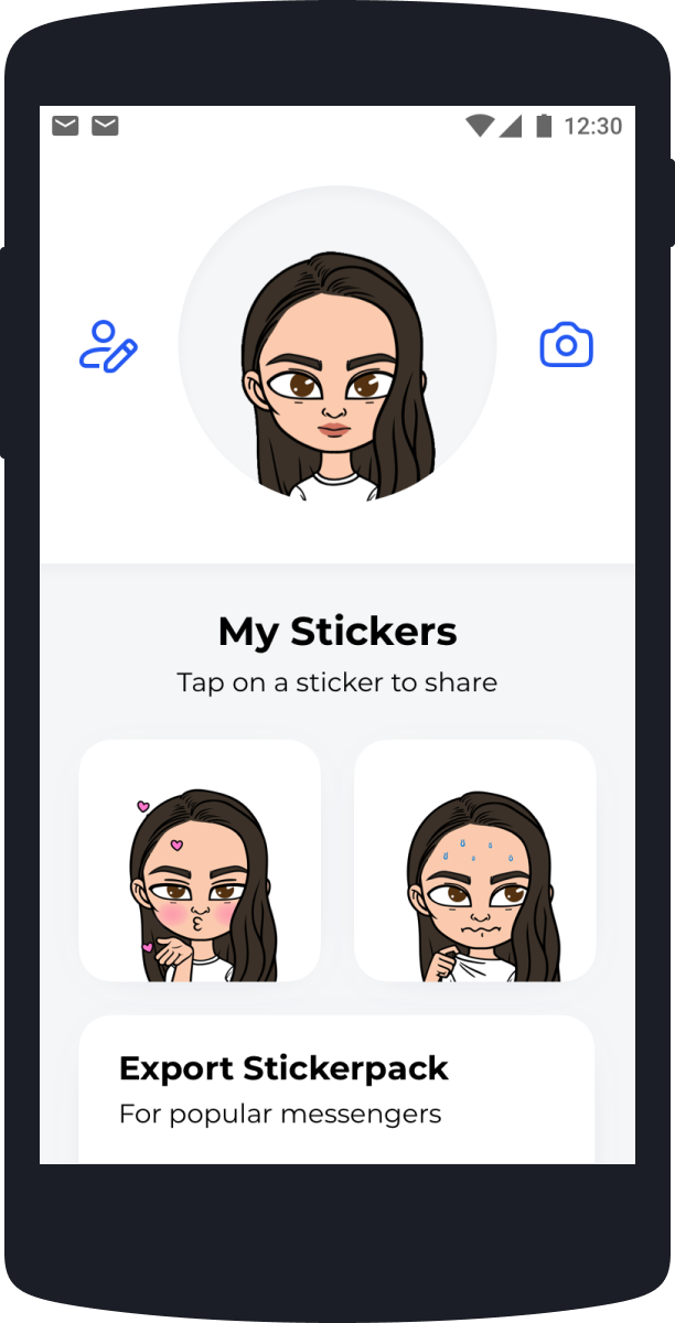 Just look at the camera! Stickerface will recognize your face and take a photo automatically